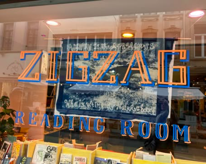 Zigzag Reading Room is een unieke literaire en culturele ruimte in Brussel, gewijd aan liefhebbers van boeken, lezen en reflectie. Het is een intieme en inspirerende plek waar je een eclectische selectie boeken kunt ontdekken — romans, essays, poëzie, strips en gespecialiseerde werken — zorgvuldig gekozen om nieuwsgierigheid te wekken en de geest te voeden. De sfeer is rustig, warm en ontspannen, ideaal om een boek door te bladeren, jezelf in een nieuwe lezing te verdiepen of deel te nemen aan literaire evenementen en ontmoetingen met auteurs. Dankzij de gastvrije en gedeelde ambiance is Zigzag Reading Room een geliefd adres voor lezers, studenten en iedereen die graag ideeën en literaire werelden verkent in een inspirerende en toegankelijke omgeving.